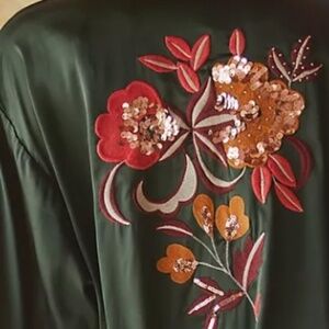 Anthropologie Green Sleek Floral Sequined Robe Small/Medium