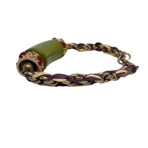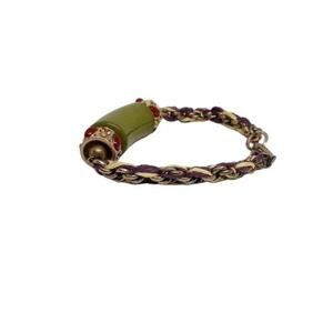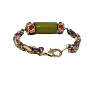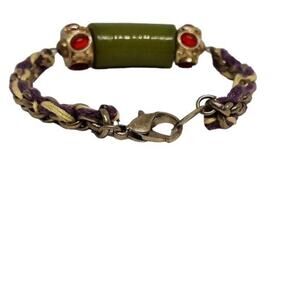 Anthropologie Green Stone Bracelet Chain Red inset Accent New with tags Clean sm