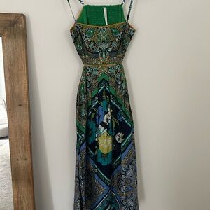 Anthropologie Green and Blue Floral Maxi Dress