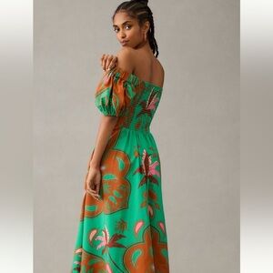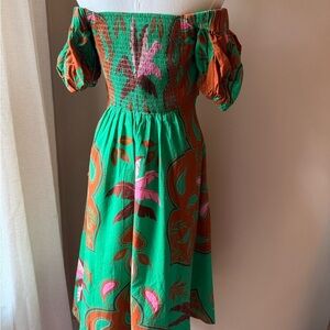 Anthropologie Green and Orange Puff Sleeve Sundress