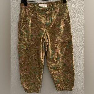 Anthropologie Green/Pink Floral Cropped Cargo Balloon Pants Size 00P