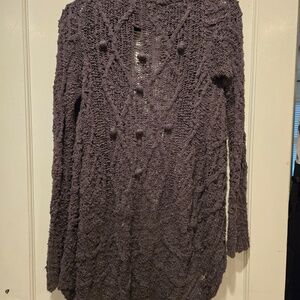 Anthropologie Grey Crocheted Cardigan - Size Small. Please see image for back of sweater showing an opening.