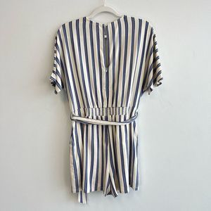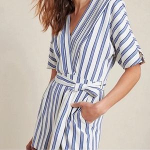 Anthropologie Greylin Blue Striped Josie Romper Shorts Size M Belted Soft