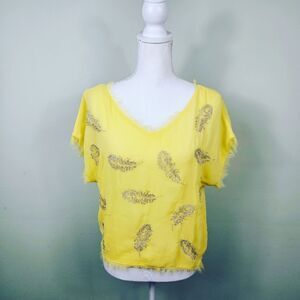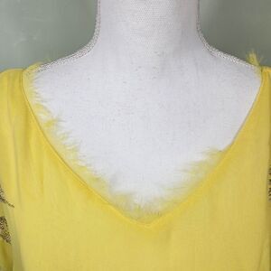 Anthropologie Greylin Feather Motif Blouse. Yellow XS