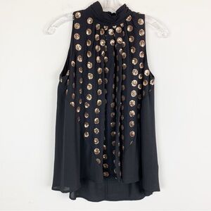 Anthropologie Greylin Gold Sequin Swirl Chiffon Top