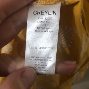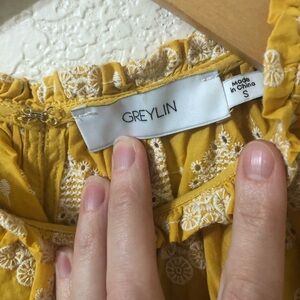 Anthropologie Greylin Smocked Yellow Blouse with White Embroidery - Size Small