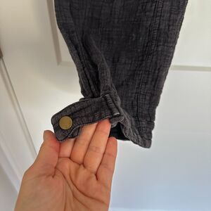 Step up your style with these Anthropologie cargo pants in a unique crinkled textured fabric. Designed with button flap pockets, adjustable cuffs, and a flattering high-rise fit, these pants blend utility fashion with everyday comfort.