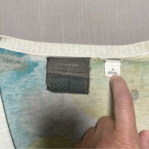 Beautiful Anthropologie Guinevere cardigan sweater in size XS. Features a soft knit with a painterly watercolor floral design in yellow, green, teal, and blush tones on a neutral base. Designed with a deep V-neckline, button front closure, and ribbed trim at the cuffs and hem. Lightweight and versatile, this sweater is perfect for layering over a cami, tee, or dress. A rare and eye-catching Anthropologie piece that blends artsy style with everyday wear.