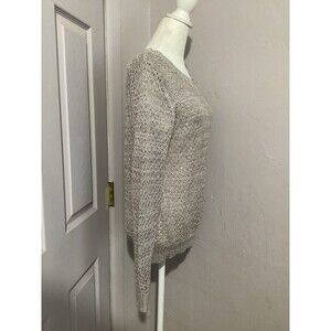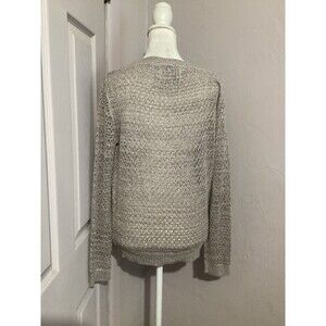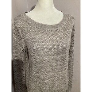 Anthropologie Guinevere Gray Silver Metallic Crochet Hemp Pullover Sweater M