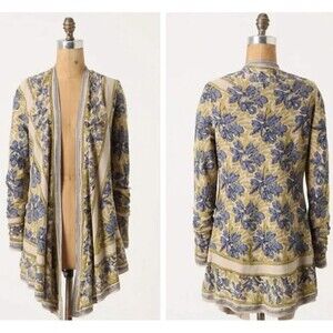 Anthropologie Guinevere Pointed Tapestry Lightweight Linen Waterfall Cardigan M