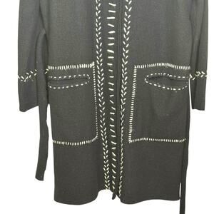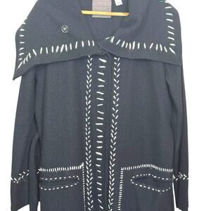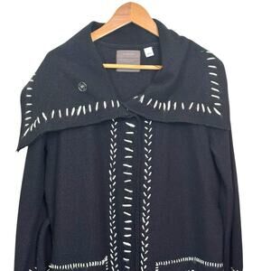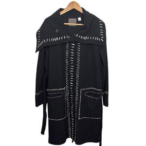 Anthropologie Guinevere Size Medium Black and White 100% Merino Wool Belted Coat