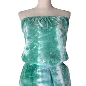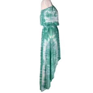 Anthropologie Gypsy 05 Silk Strapless Tie Dye Maxi Dress Green Asymmetrical Hem