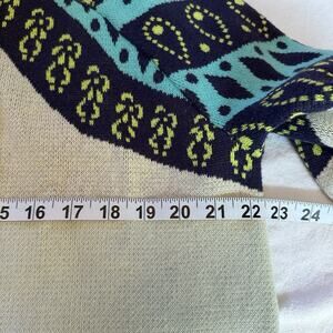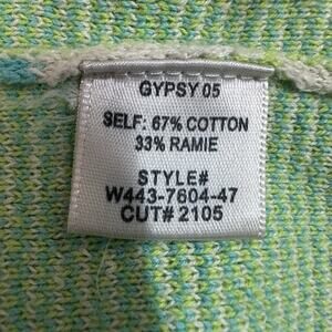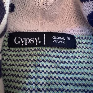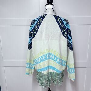 Gypsy 05 Global Village Green Cream Long Sleeve Open Fringe Cardigan Sweater size Medium