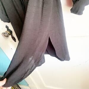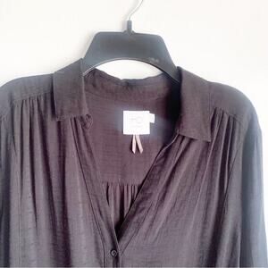 Anthropologie HD In Paris Carmina Tie Waist Tunic Dress Black Size Medium M. Good, preowned condition. Collared. V-neck. Buttons down front. Tie waist to cinch in for desired fit. Sleeves can be worn long as shirt sleeves or rolled up and buttoned to extra fabric for a different look. Tunic shirt dress. Side vents for movement and comfortable fit over hips. 100% rayon. Machine wash cold. Line dry. Rounded hemline.