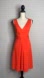 The dress features a sleeveless, V-neckline that creates an elegant silhouette, with a wrapped bodice that enhances the waistline. The inverted pleats at the front give the skirt a gentle flare, adding movement and creating a subtly voluminous A-line shape. The length falls just above the knee. Its bold, bright hue is perfect for summer gatherings, weddings, or any occasion where you want to stand out.