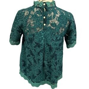 Anthropologie HD Lace Meadows Blouse - GUC, missing one button - no other flaws