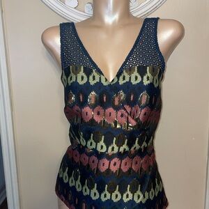 Anthropologie H D women’s blouse 12 top shirt blue foil tank wrap NWT