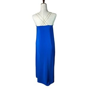 Anthropologie HD in Paris 100% Silk Cobalt Blue Flowy Maxi Long Dress Sz 2 READ