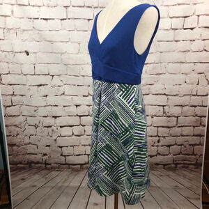Anthropologie HD in Paris Ardmore Dress Sleeveless Surplice Blue Green Size US 8