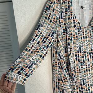 Anthropologie HD in Paris Career Blouse V Neck Tie Silky School Geo Office