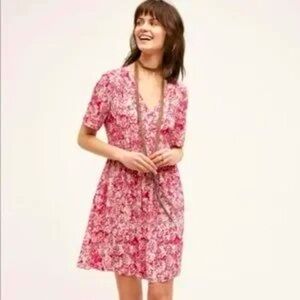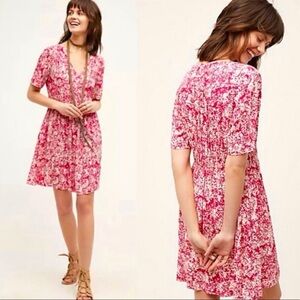 Anthropologie HD in Paris Felicity Archipelago Dress in Pink Floral Motif Size 4