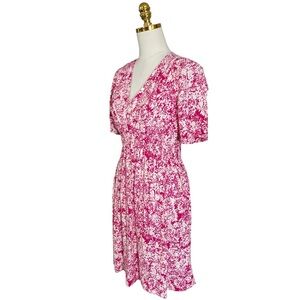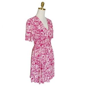 This charming dress from HD in Paris features a delightful pink and white floral pattern, perfect for casual outings. Designed with a v-neck and short sleeves, it offers a comfortable and breezy fit. The mini length and flowy fabric make it an ideal choice for warm weather, exuding a relaxed yet stylish vibe.