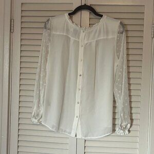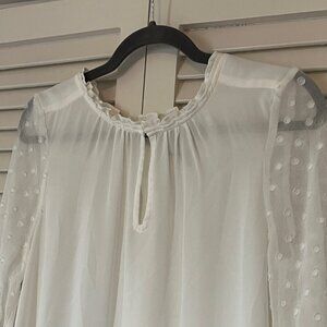 Anthropologie HD in Paris Josie Clipdot Blouse 4 white chiffon sleeves