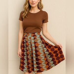 Blue, orange, brown, round pattern, silk skirt, party, anthropologie
