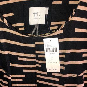 Anthropologie HD in Paris Saraid NWT Black/Tan Stretch Jersey Flare dress with full skirt