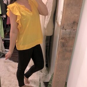 Anthropologie HD in Paris yellow ruffle sleeve top size small 10