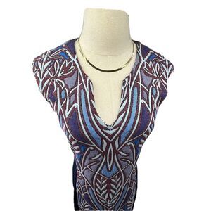 Anthropologie HD in Paris Blue Cleo Jacquard Sheath Knit Panel Dress Sz Small. Measurements in photos. Very good pre-owned condition. No rips, holes, or stains. Comes from smoke free environment. Back Exposed zipper, Nice stretch to fabric. My model is about a size 14 -16 Big Kid or a Women's Small Petite. She is almost 5'4" so she hasn't quite filled out the dress in modeling but you can see how very flattering it is.