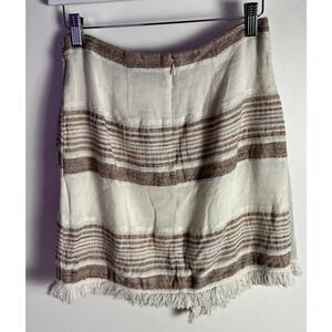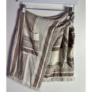 Anthropologie HOLDING HORSES Avery Faux Wrap Skirt Fringe Tie Side Beige Sz 0