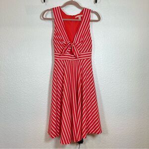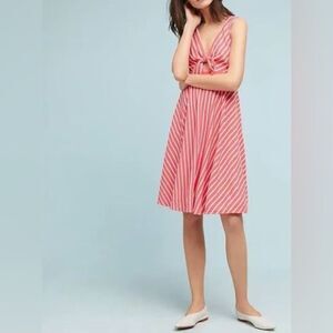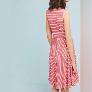 Anthropologie HUTCH April Keyhole Striped Fit & Flare Dress in Coral size XS