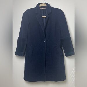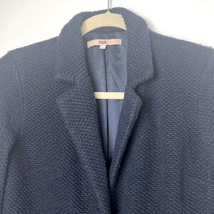 Anthropologie HUTCH Navy Elaina One Button Textured Mid Length Coat Size Large
