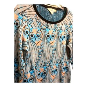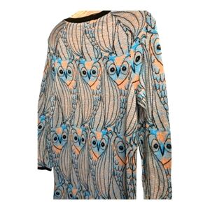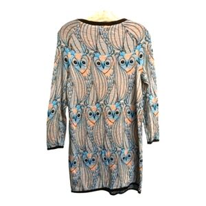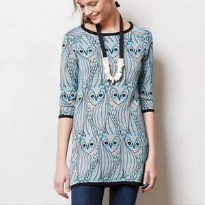 Anthropologie HWA Owl Sweater Knit Tunic Dress All Over Pattern Blue Black