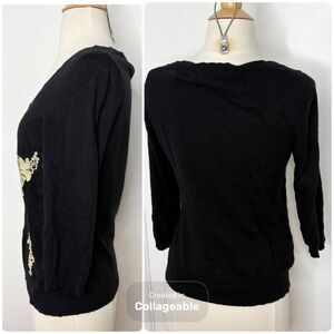 Anthropologie HWR Black Celosia Sweater with Cream Lace Accents Cashmere Blend