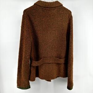Anthropologie HWR Boucle Knit Cardigan Sweater Collared Button Marled Brown L