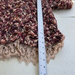 Anthropologie HWR Monogram Lace Trim Chunky Wool Cardigan Sweater XS