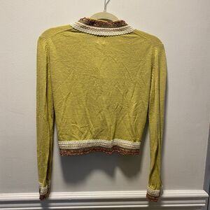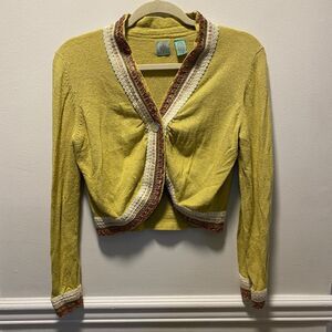 Anthropologie HWR Silk Linen Blend Boho Y2K Cropped Cardigan Sweater Jacket L