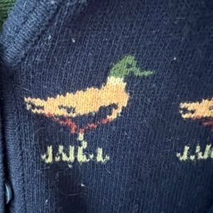 HWR Anthropologie wool sweater no flaws. Nice and warm. Such a cute vintage duck pattern! Size small