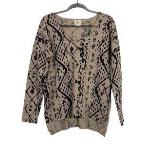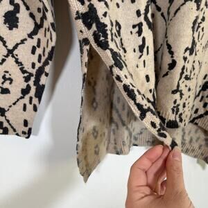 Anthropologie HWR Wool Yak Cashmere Snake Python Print V-Neck Sweater Sz Medium
