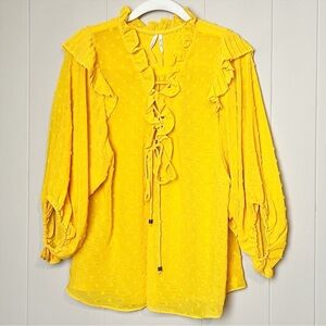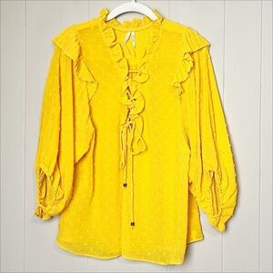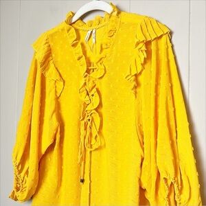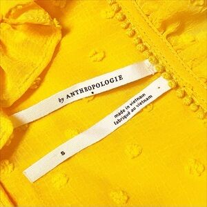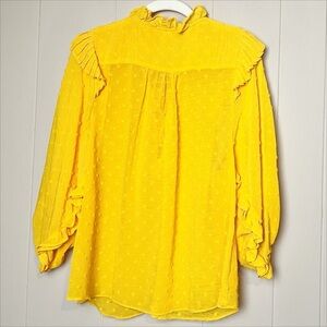 Anthropologie Haida Swiss Dot Peasant Top Small blouse marigold yellow ruffle