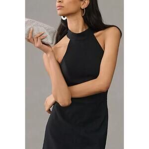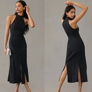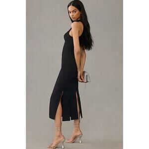 Anthropologie Halter Slit Fringe Midi Dress Linen Cotton Blend Black NWT