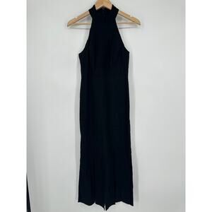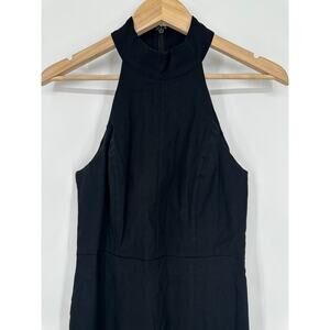 Anthropologie Halter Slit Fringe Midi Dress Sleeveless Linen Cotton Blend Black