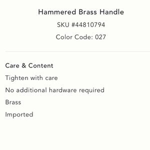 Anthropologie Hammered Brass Handle Extra Large NIB