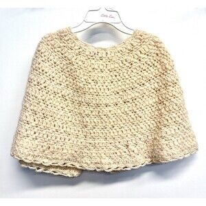 The Anthropologie Hand Knit By Dollie Chunky Sweater Poncho is a stylish and unique outerwear piece perfect for various occasions. Made from wool, this short poncho features a solid beige color with a vintage feel and a touch of gold thread accents. It has a button closure and a collarless design, making it a versatile choice for winter, fall, or spring. With a classic fit and one size that fits most, this hand-knit poncho from Anthropologie is a must-have for any fashion-forward woman looking to add a touch of bohemian or princess-inspired style to her wardrobe.