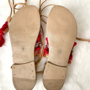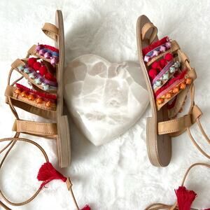 Super cute summer sandals by Barbara Barbieri for Anthropologie handmade in Italy. Leather upper embellished with colorful jewels and woven yarns. Rubber sole. Size 6. They’re in excellent preowned condition.