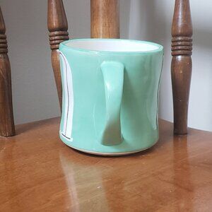 This Anthropologie mug is a beautiful shade of teal. It is handpainted and has a very handmade shape. This mug is in excellent condition and is new, never used.