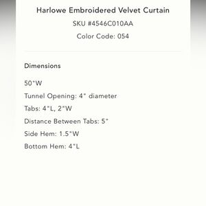 Anthropologie Harlowe Embroidered Velvet Curtain 50 x 84 NWT