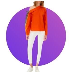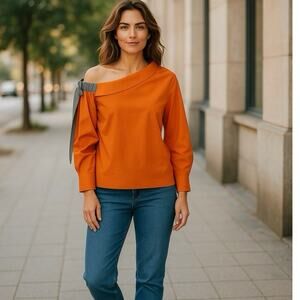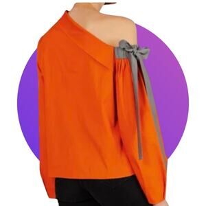 Anthropologie Harshman Orange Liana Cotton One Shoulder Top Blouse L XL 14 NWT